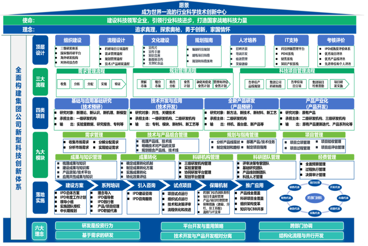 科技創(chuàng)新戰(zhàn)略是企業(yè)實現(xiàn)可持續(xù)發(fā)展的核心。企業(yè)需圍繞發(fā)展戰(zhàn)略和目標,明確技術創(chuàng)新的重點領域,設定目標和指標,制定實施計劃,并強化組織支持和監(jiān)督評估??萍紕?chuàng)新體系架構涵蓋創(chuàng)新目標、行為、動力和支撐系統(tǒng)。例如,某集團公司以建設科技領軍企業(yè)為使命,打造涵蓋頂層設計、需求管理、項目管理等多方面的新型科技創(chuàng)新體系,通過追求真理、探索奧秘等理念,推動企業(yè)創(chuàng)新。