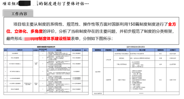 根據(jù)前提供的150個制度,項目組以5個維度、21個指標(biāo)為中心,對所有制度進(jìn)行了全面的評估,并編制了公司制度清單。