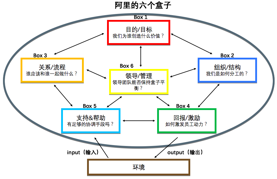 再如麥肯錫的7S模型和阿里的六個盒子: