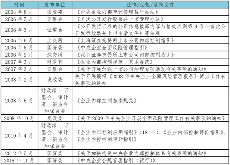 以上便是我們所熟知的“一規(guī)范三指引”,并且在國有企業(yè)內(nèi)控體系建設(shè)及評價,外部審計機構(gòu)審計中被廣泛引用。