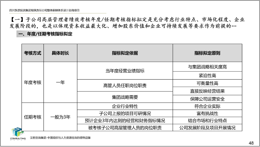 2、優(yōu)化子公司高層領(lǐng)導(dǎo)班子經(jīng)營業(yè)績考核辦法。根據(jù)各子公司的行業(yè)特點(diǎn)、業(yè)務(wù)定位和所處發(fā)展階段,擬定了子公司高層領(lǐng)導(dǎo)班子經(jīng)營業(yè)績考核指標(biāo)庫,以及相應(yīng)的指標(biāo)選擇方法和權(quán)重測算方法,確??己酥笜?biāo)符合子公司所處發(fā)展階段,提高激勵作用,保障集團(tuán)戰(zhàn)略目標(biāo)的實(shí)現(xiàn)。