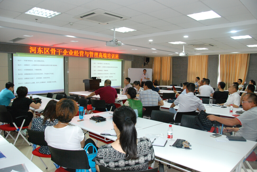 河?xùn)|區(qū)經(jīng)信局領(lǐng)導(dǎo)主持了開(kāi)班儀式并做了主題發(fā)言。根據(jù)企業(yè)的需求,本次培訓(xùn)班設(shè)計(jì)了戰(zhàn)略、運(yùn)營(yíng)、人力資源三大課程單元。